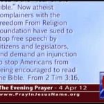 Let us pray. Almighty God, we pray for a courtroom victory for the people of Pennsylvania, whose elected representatives voted unanimously, with no objections by Democrats or Republicans, to declare 2012 is the “Year of the Bible.” Now atheist complainers with the Freedom From Religion Foundation have sued to stop free speech by citizens and …