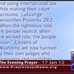Let Us Pray. Almighty God, we are grieved that U.S. District Judge Vicki Miles-LaGrange ruled against seventy percent of Oklahoma voters who voted for an amendment to ban Oklahoma courts from implementing Sharia law and using international law while making their court decisions. LaGrange personifies Proverbs 29:2, “When the righteous rule, the people rejoice; when …
